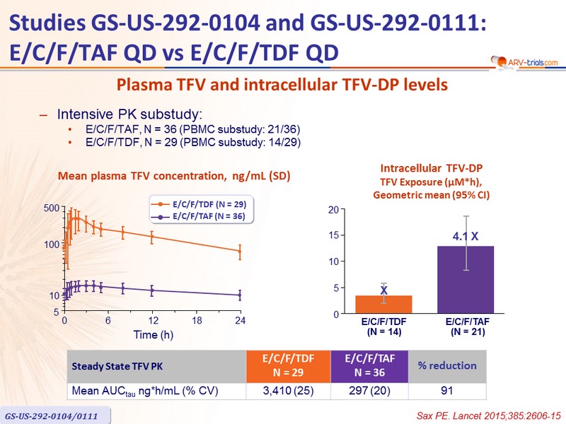 - E/C/F/TDF = 4 : renal failure = 2, decreased GFR = 1, nephropathy = 1