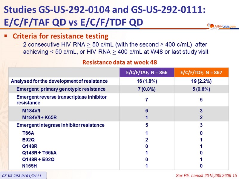 - LDL-cholesterol increase: 11.0% E/C/F/TAF vs 4.8% E/C/F/TDF