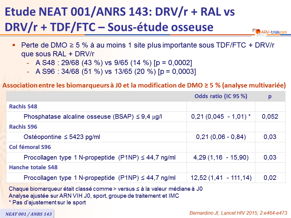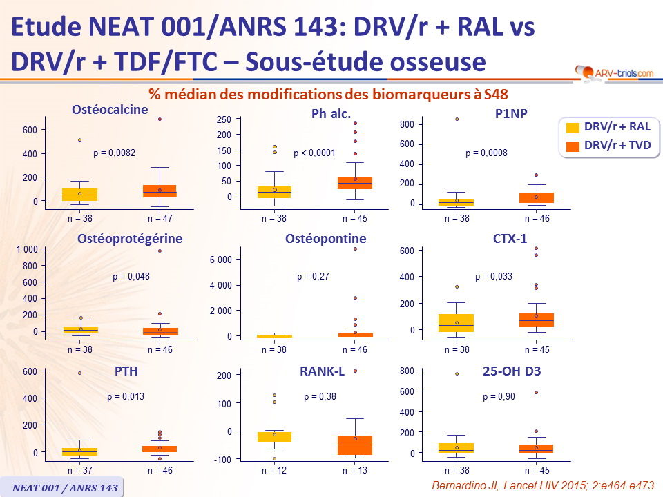 - Comparé à DRV/r + RAL, turn over osseux significativement plus important