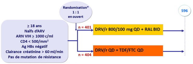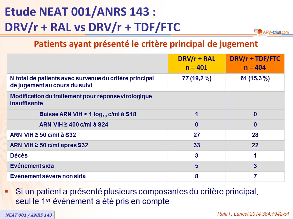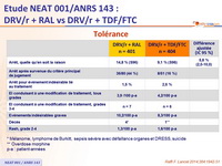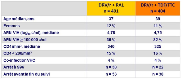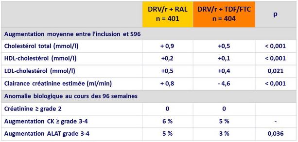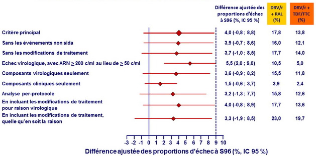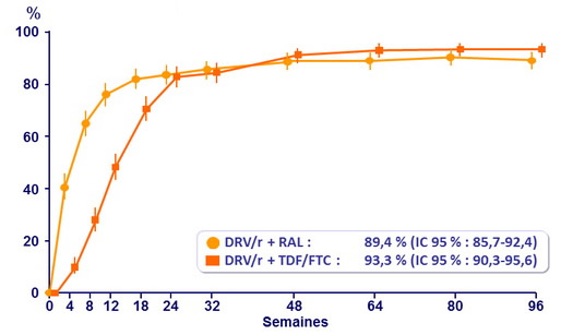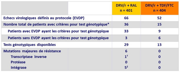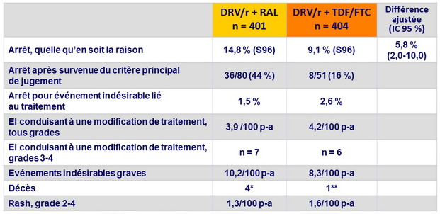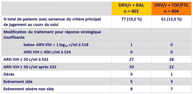 - DRV/r + RAL était non inférieur à DRV/r + TDF/FTC concernant le critère principal