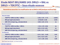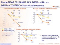 - Perte de DMO ≥ 5 % à au moins 1 site plus importante sous TDF/FTC + DRV/r que sous RAL + DRV/r