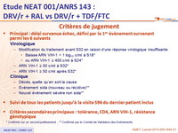 - Critères secondaires principaux : tolérance, CD4, ARN VIH-1, résistance génotypique