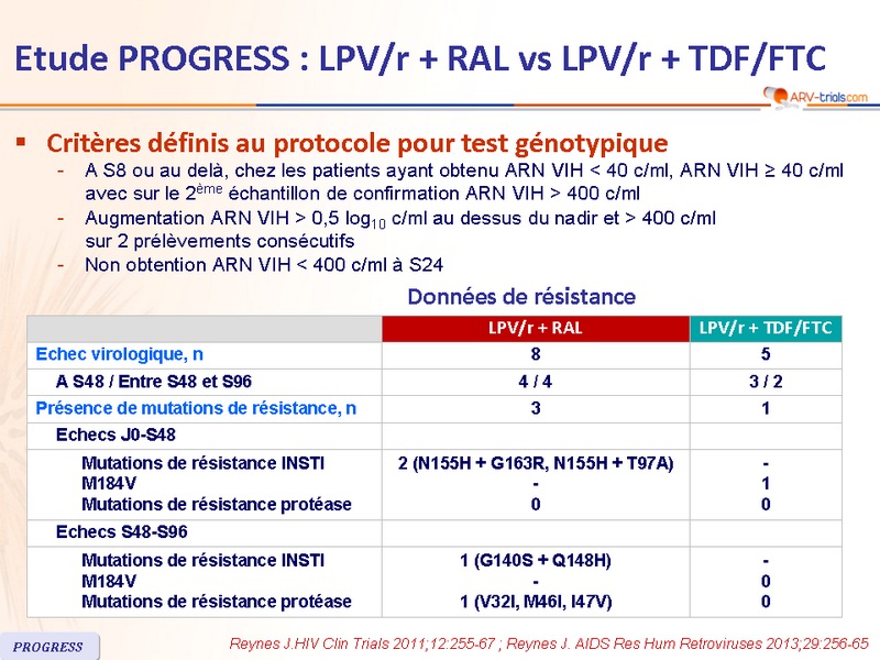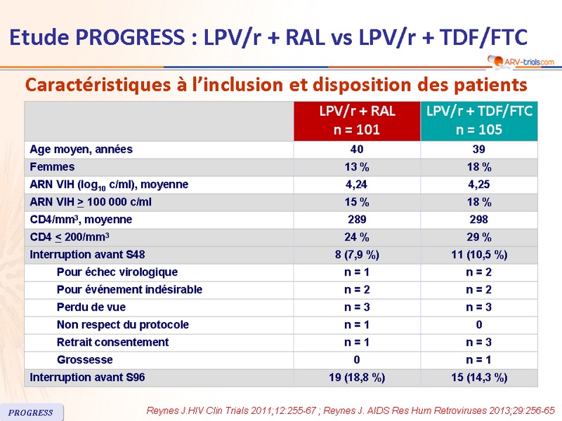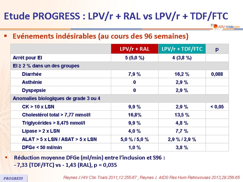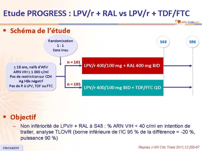 Etude PROGRESS : LPV/r + RAL vs LPV/r + TDF/FTC