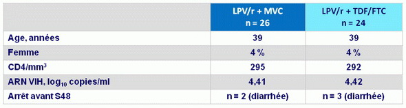 Etude VEMAN : LPV/r + MVC vs LPV/r + TDF/FTC