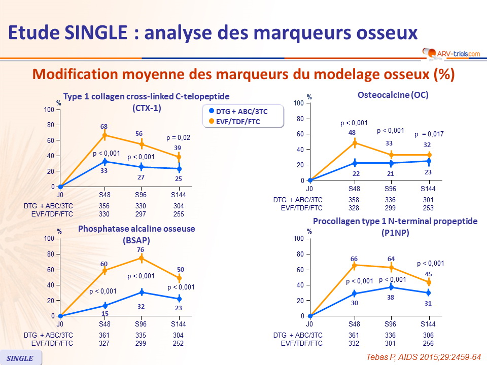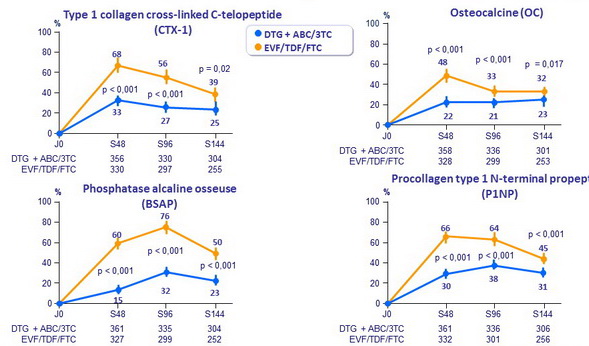 + 208 pour TDF/FTC/EFV (p < 0,001)