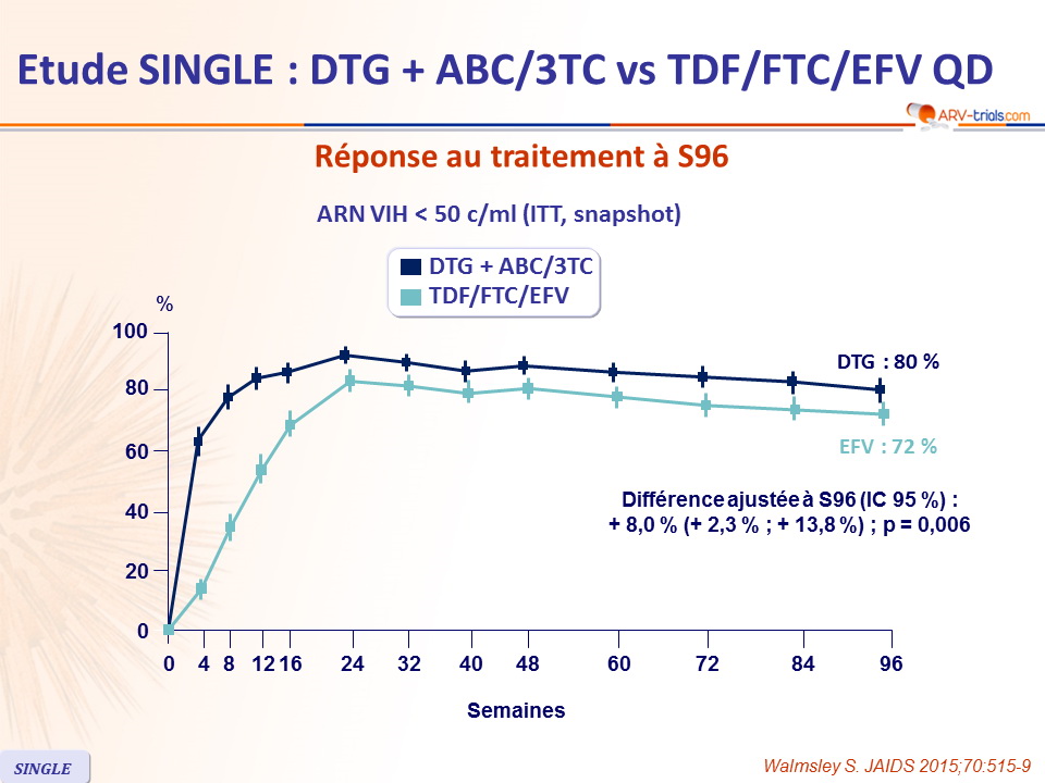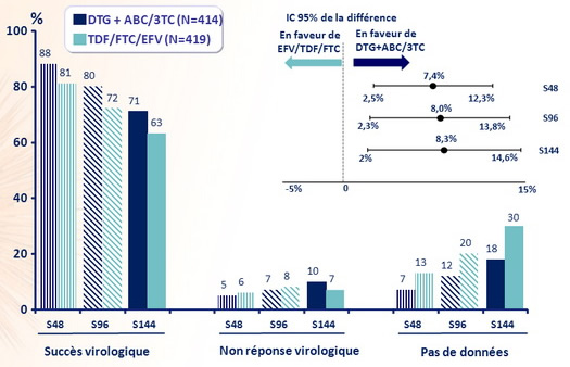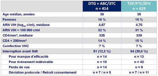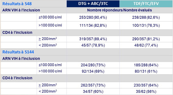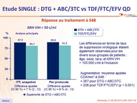 Les différences en terme de taux de suppression virologique étaient également observées pour les divers sous-groupes de patients : âge, sexe, race, et ARN VIH > 100 000 c/ml à l’inclusion