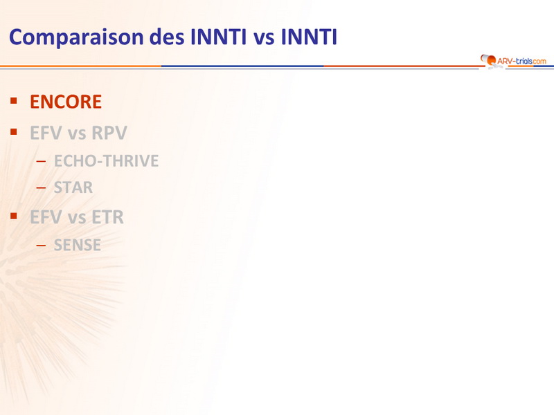 Essais cliniques comparatifs pour le traitement antirétroviral de 1ère ligne depuis 2006