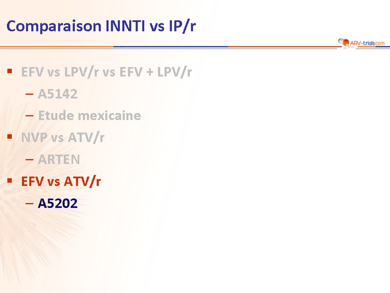 - Parmi les échecs virologiques, moins de résistance avec ATV/r, avec les 2 INTI