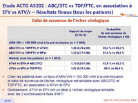 - Globalement, ATV/r et EFV ont un délai à l’échec virologique similaire, avec les 2 combinaisons fixes d’INTI