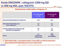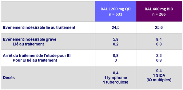 - Profil global de tolérance similaire à RAL 400 mg BID