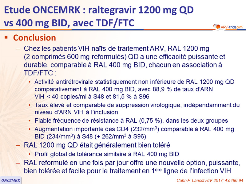 - RAL reformulé en une fois par jour offre une nouvelle option, puissante, bien tolérée et facile pour le traitement en 1ère ligne de l'infection VIH