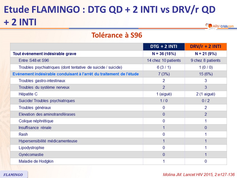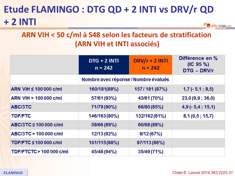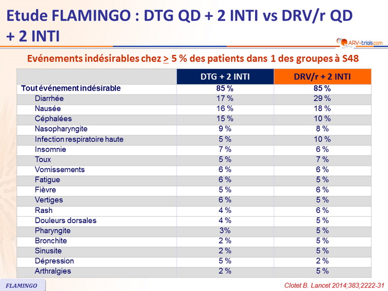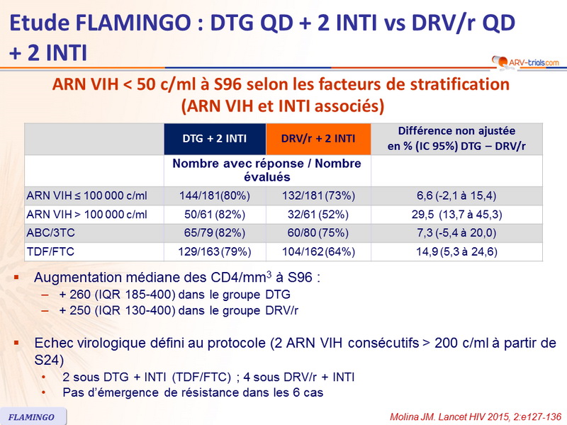 Etude FLAMINGO : DTG QD + 2 INTI vs DRV/r QD+ 2 INTI