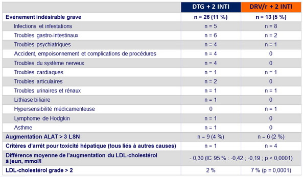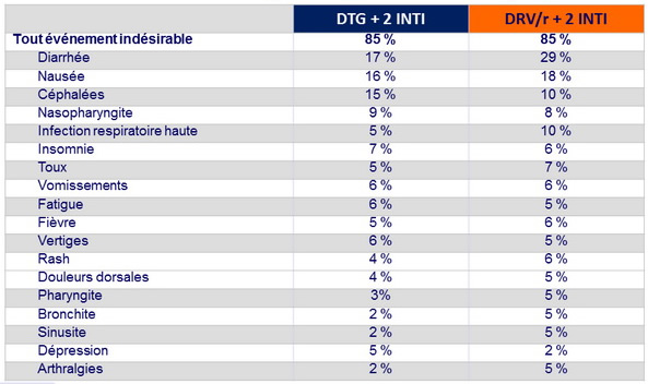 - Les événements indésirables conduisant à l'arrêt étaient moins fréquents avec DTG