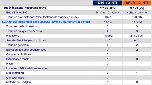 - A l'exception de 2 patients avec tentative de suicide et overdose sous DTG
