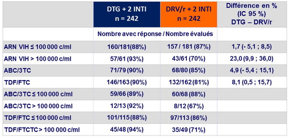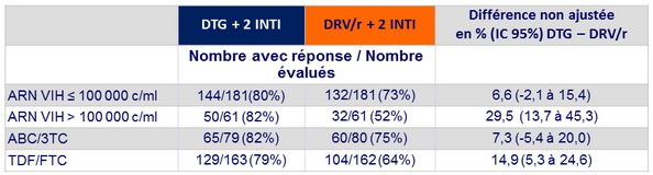 - Chez les patients avec une charge virale élevée à l'inclusion, le taux de réponse est plus élevé pour DTG