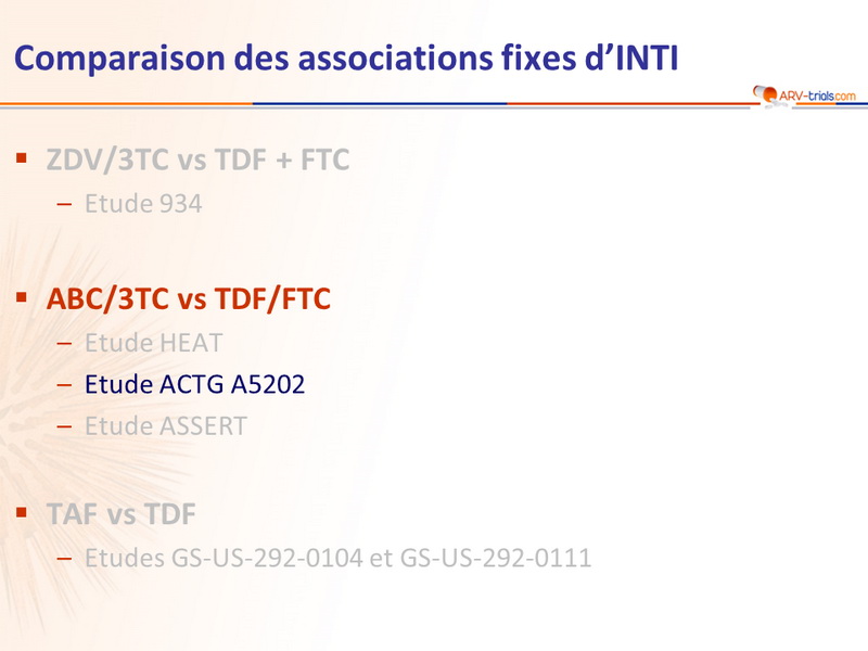 - Equivalence de ABC/3TC et TDF/FTC (pour chacun, avec ATV/r et EFV)