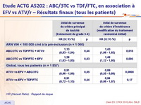 - Revue intermédiaire, programmée, par le Comité Indépendant du NIAID : efficacité virologique inférieure de ABC/3TC chez les patients avec un ARN VIH > 100 000 c/ml à la pré-inclusion