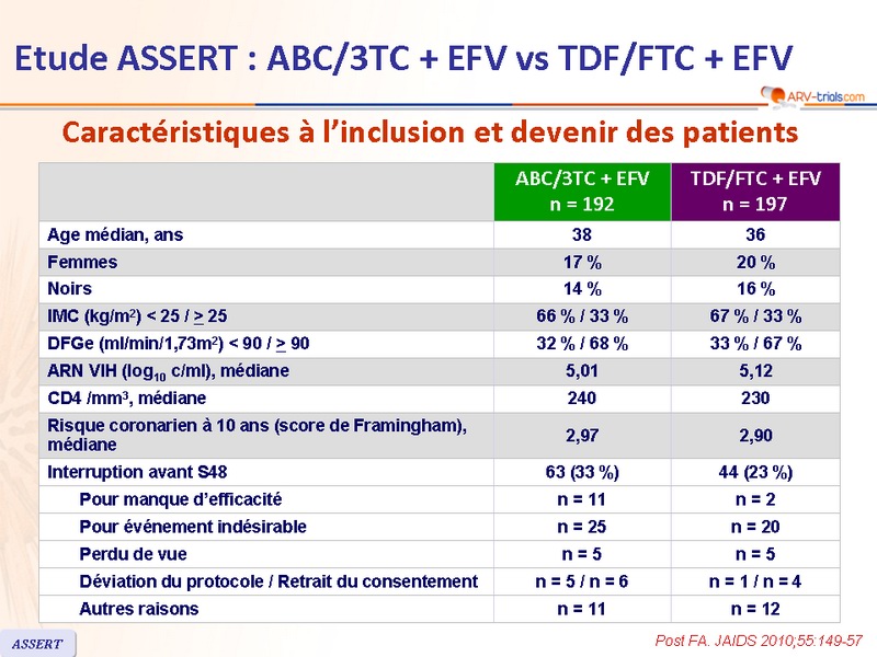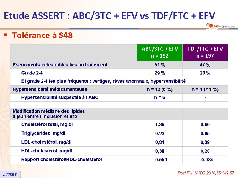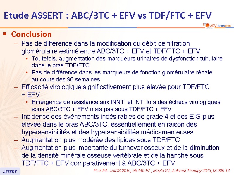 Etude ASSERT : ABC/3TC vs TDF/FTC