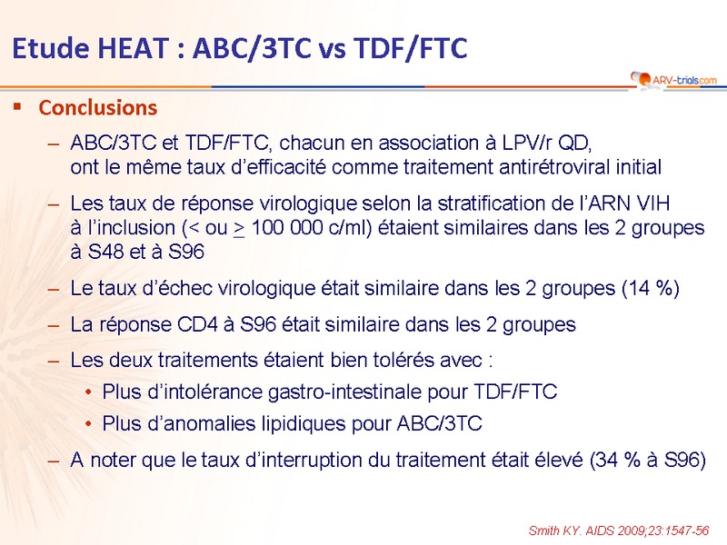 Etude HEAT : ABC/3TC vs TDF/FTC