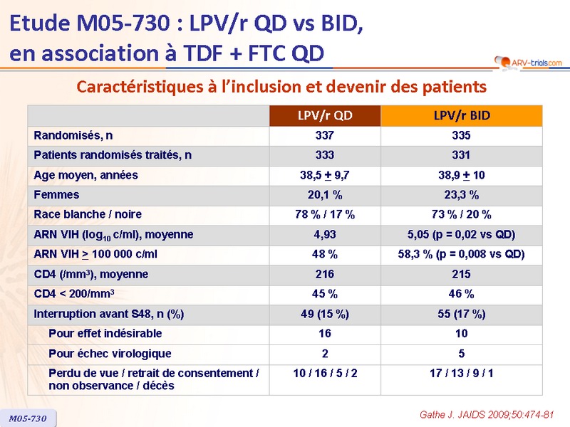 Etude M05-730 : LPV/r QD vs BID, en association à TDF