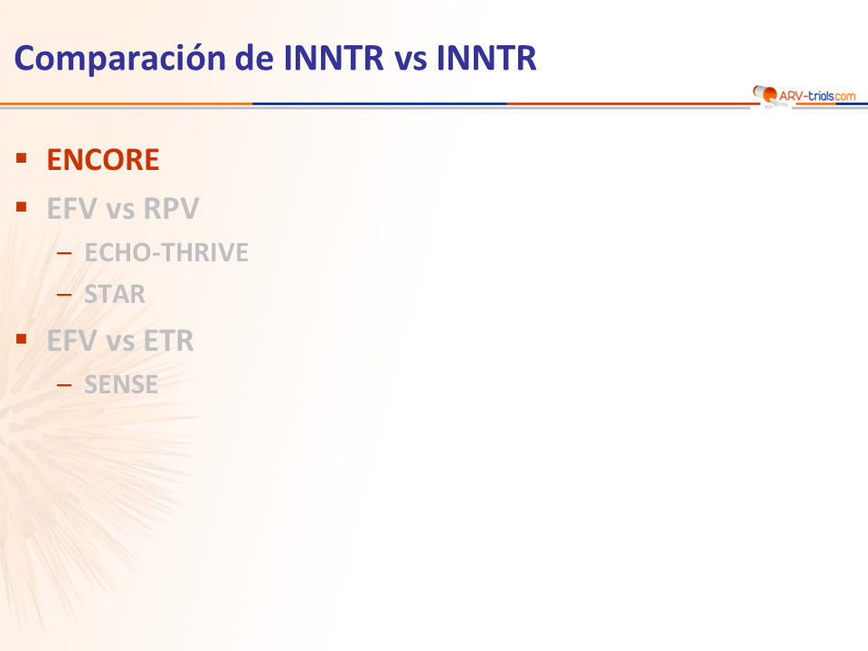 Estudio ENCORE1: (EFV 400 mg vs 600 mg QD)+ TDF/FTC
