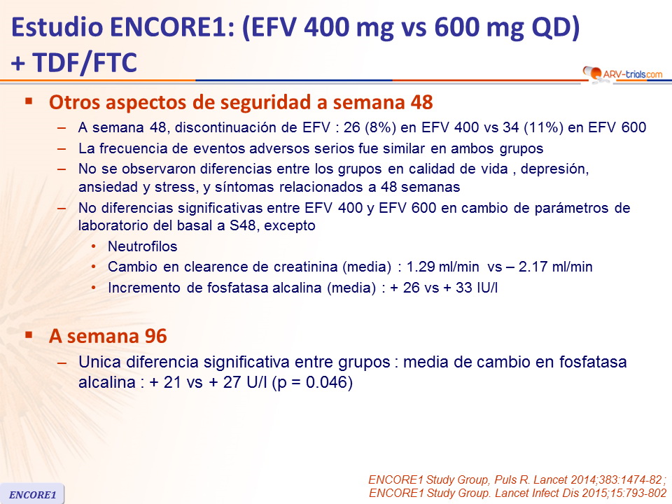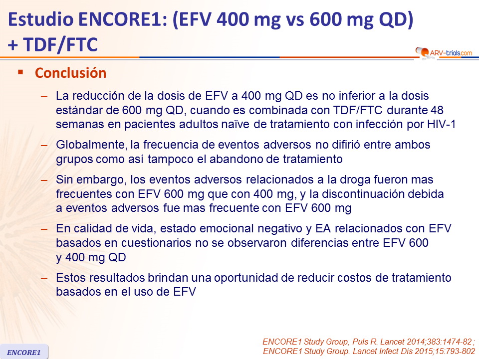Artículo original : Lancet. 2014 Apr 26;383(9927):1474-82 - Encore1 Study Group / ENCORE1 Study Group. Lancet Infect Dis 2015;15:793-802