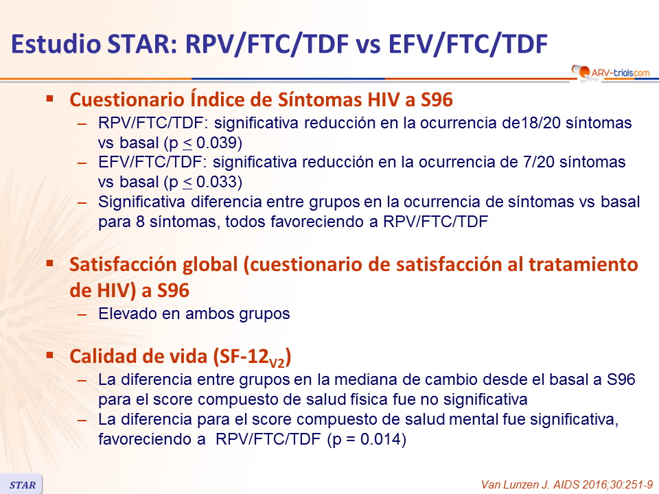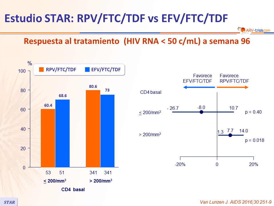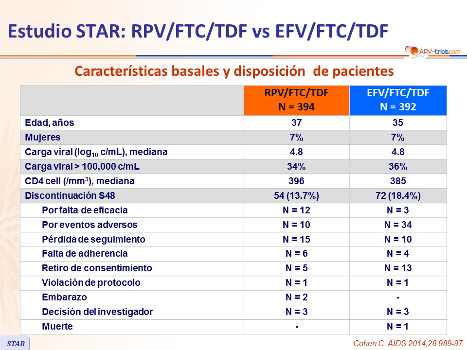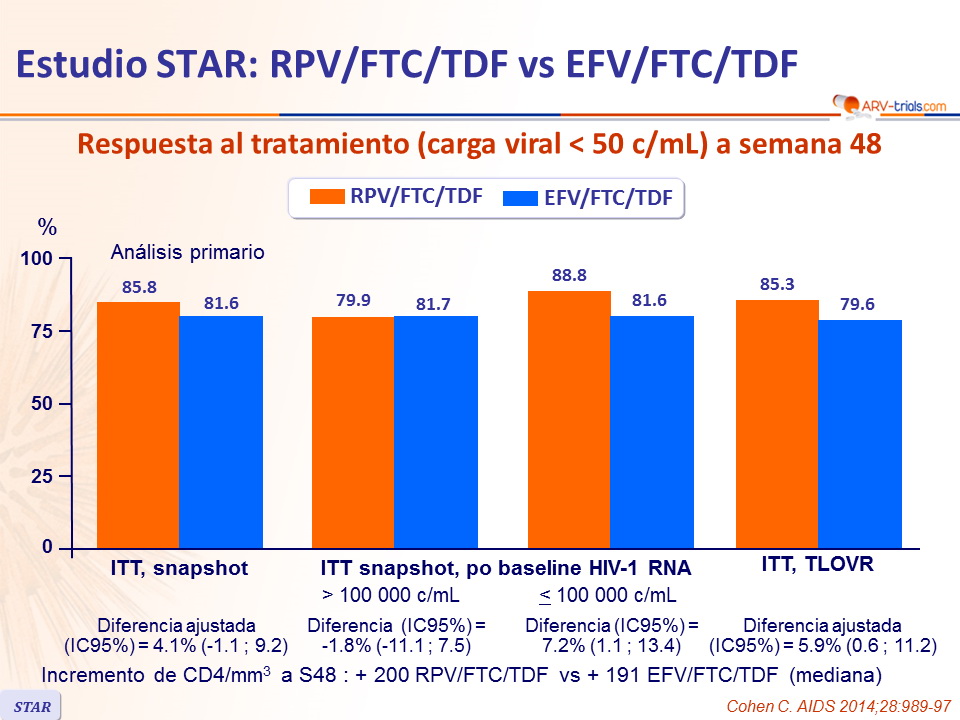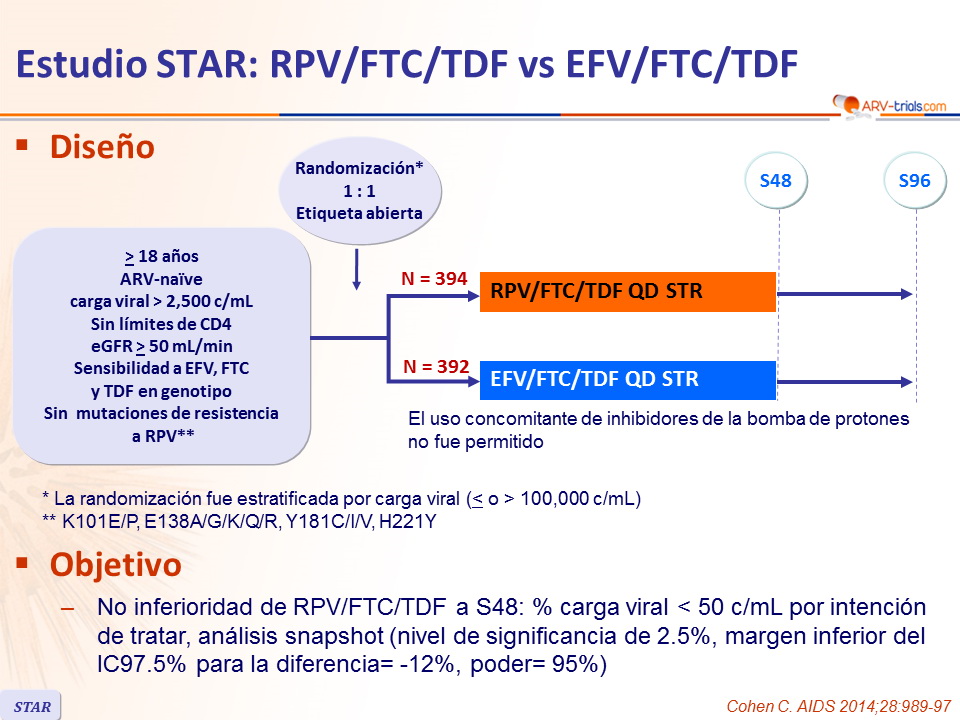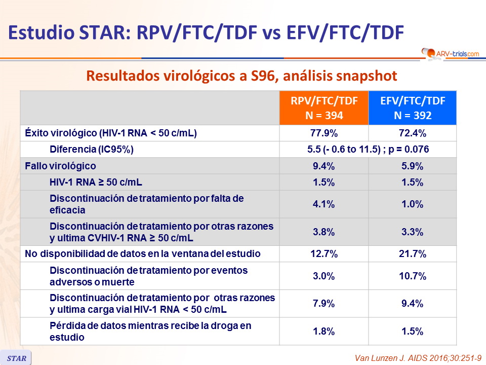 Estudio STAR: RPV/FTC/TDF vs EFV/FTC/TDF