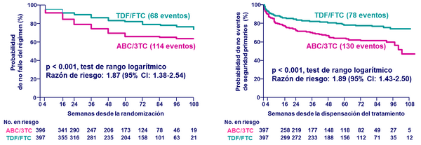 - Al momento de la acción de DSMB, el tiempo hasta el fallo virológico fue significativamente menor con ABC/3TC en comparación con TDF/FTC, independientemente de la 3ª droga
