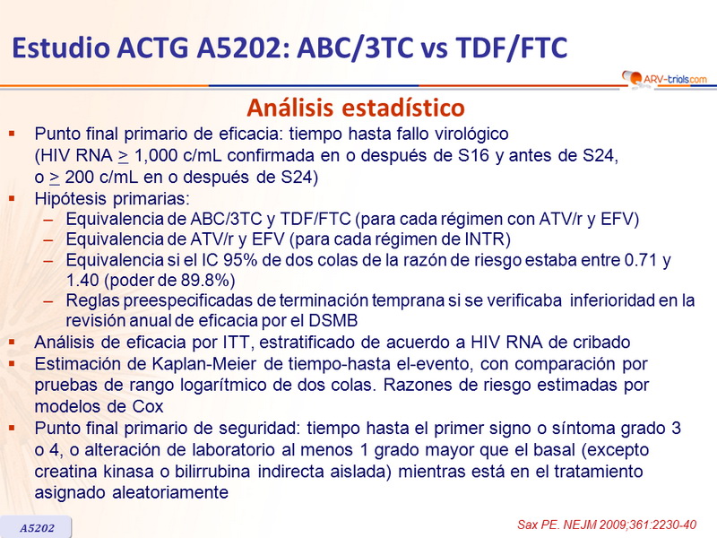 Estudio ACTG A5202: ABC/3TC vs TDF/FTC