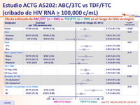 - Revisión parcial programada por el DSMB del NIAID: eficacia virológica inferior de ABC/3TC en pacientes con HIV RNA > 100,000 c/mL en el cribado