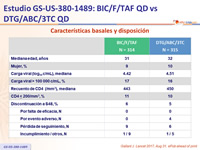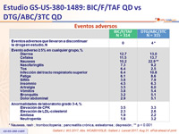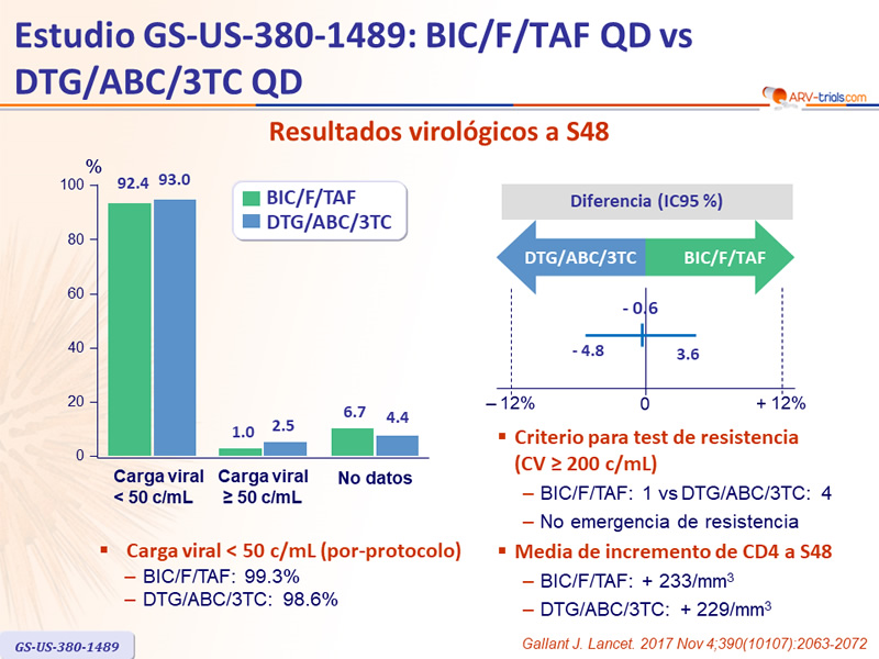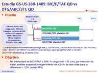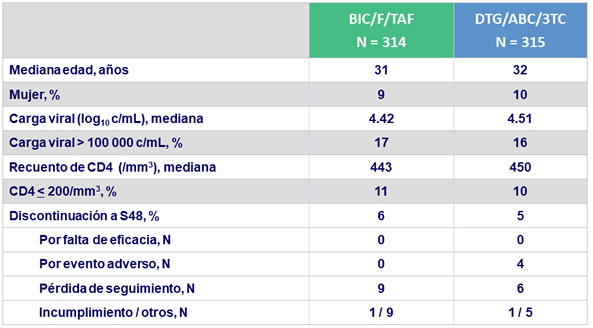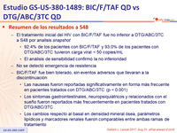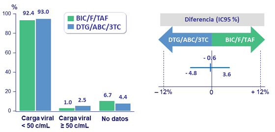 - 92.4% de los pacientes con BIC/F/TAF y 93.0% de los pacientes con DTG/ABC/3TC tuvieron carga viral < 50 copies/mL