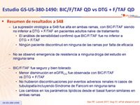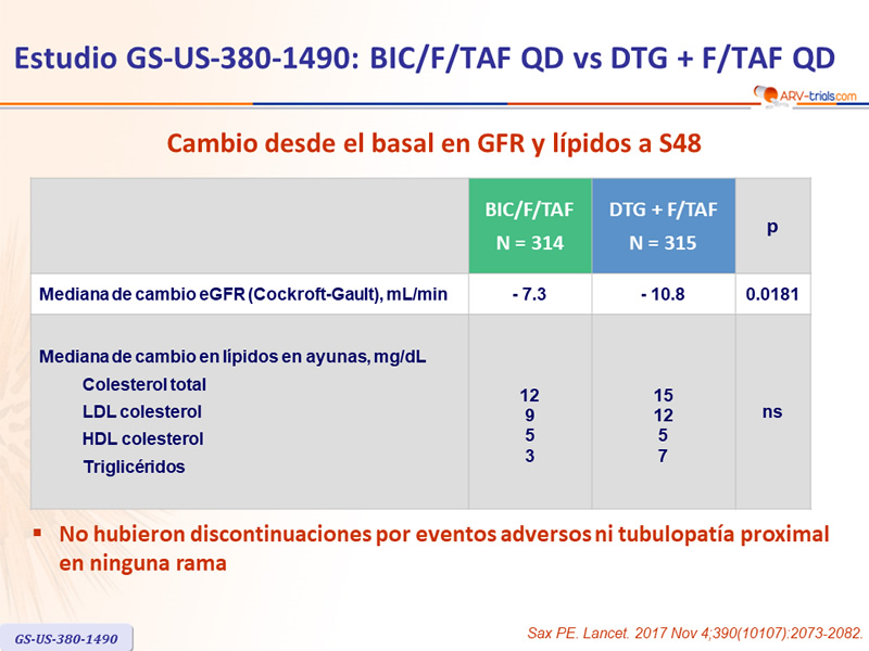 - No hubieron discontinuaciones por eventos adversos renales ni casos de tubulopatía incluyendo Síndrome de Fanconi en ninguna rama