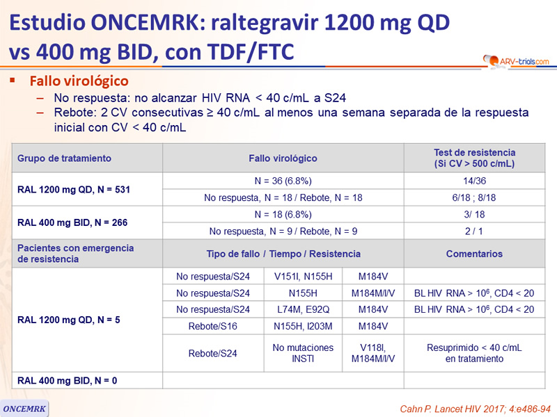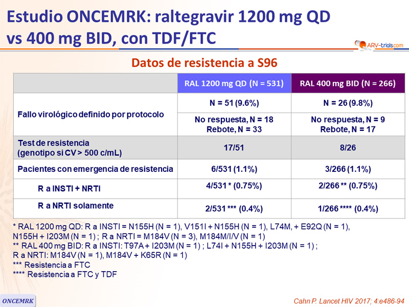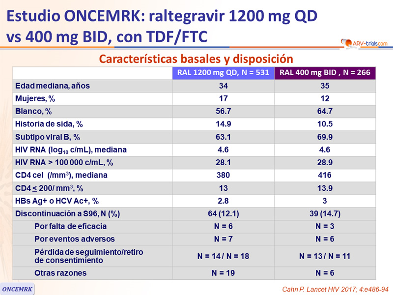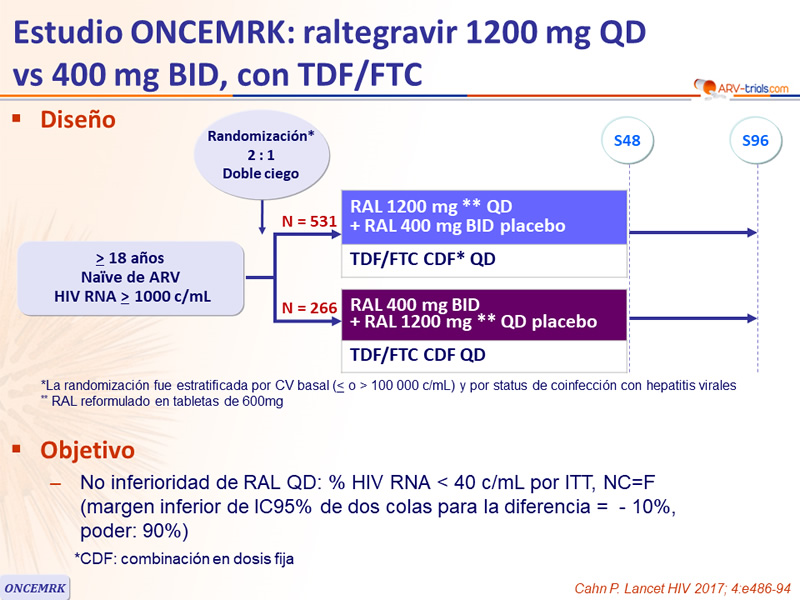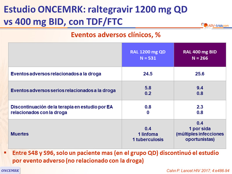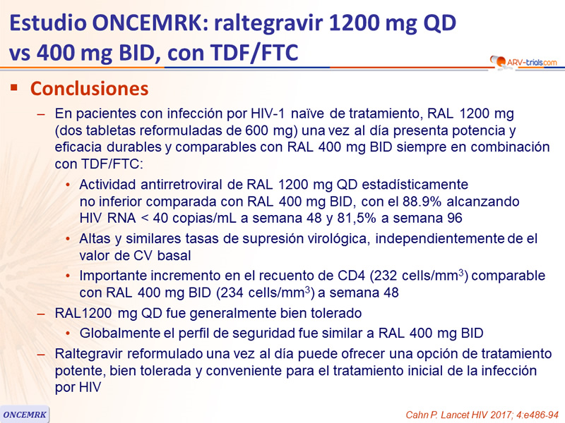 Estudio ONCEMRK: raltegravir 1200 mg QD