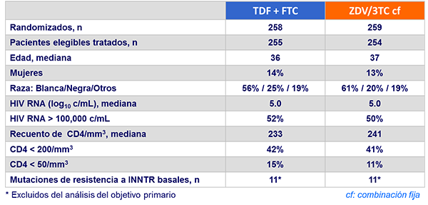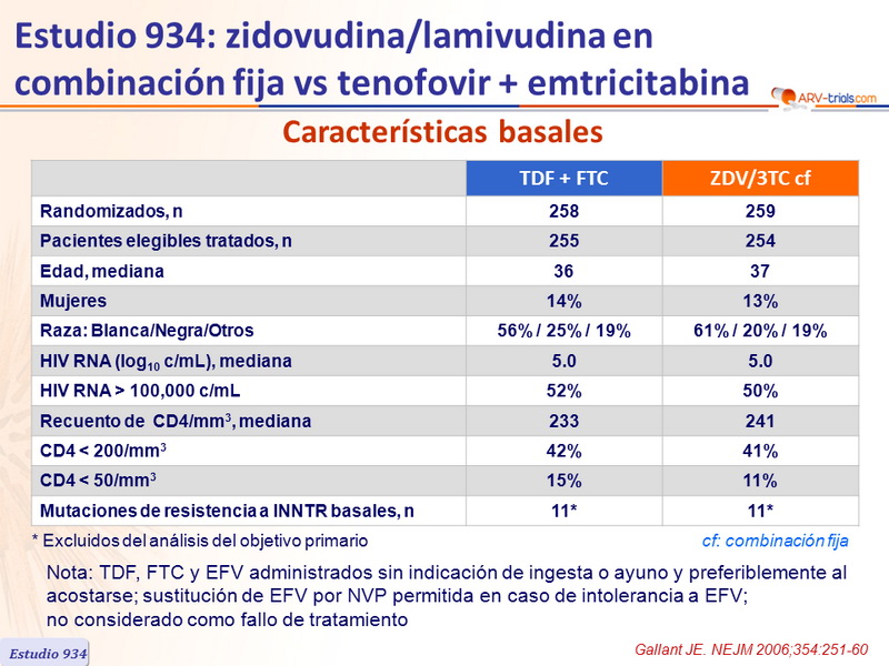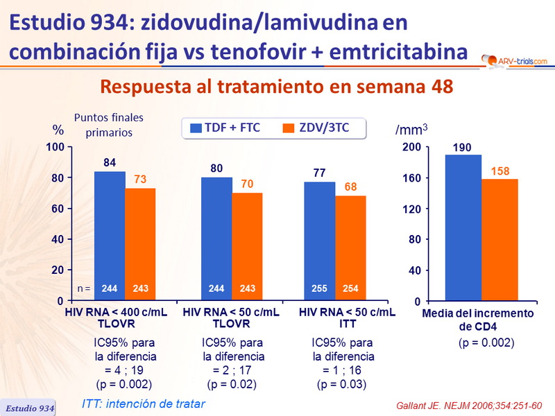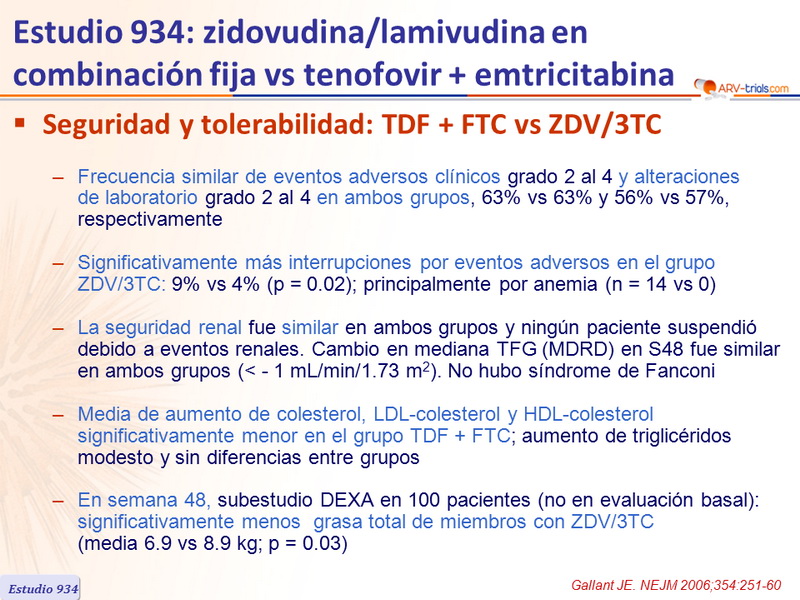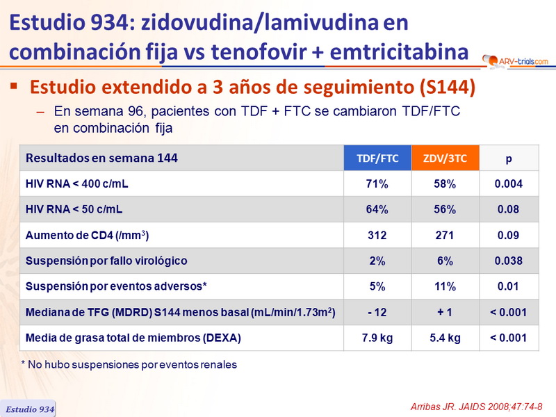 Estudio 934: zidovudina/lamivudina en combinación fija vs tenofovir + emtricitabina