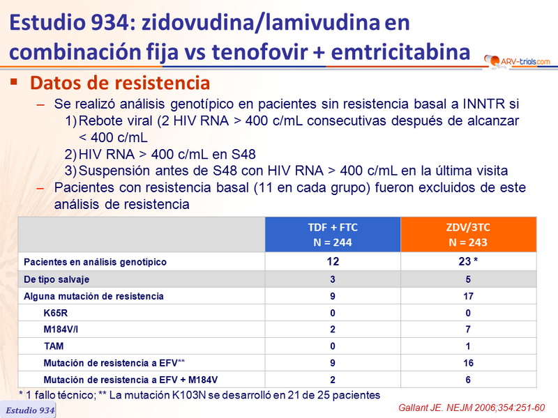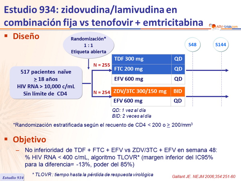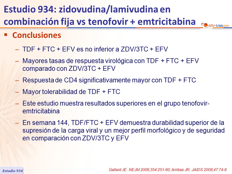 Artículo original : N Engl J Med. 2006 Jan 19;354(3):251-60 - JE Gallant, J Acquir Immune Defic Syndr. 2008 Jan 1;47(1):74-8 - JR Arribas