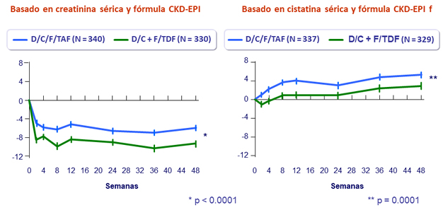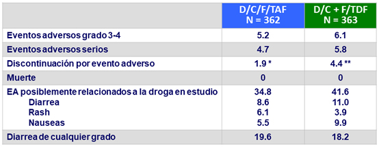 - La seguridad en cuanto a hueso, riñón y lípidos fue consistente con los perfiles conocidos de TAF y cobicistat
