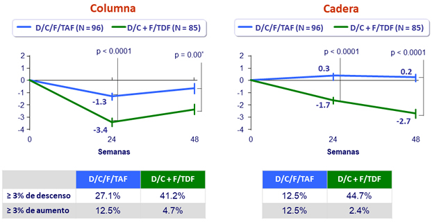 - No discontinuación de D/C/F/TAF por evento adverso oseo , renal o de SNC
