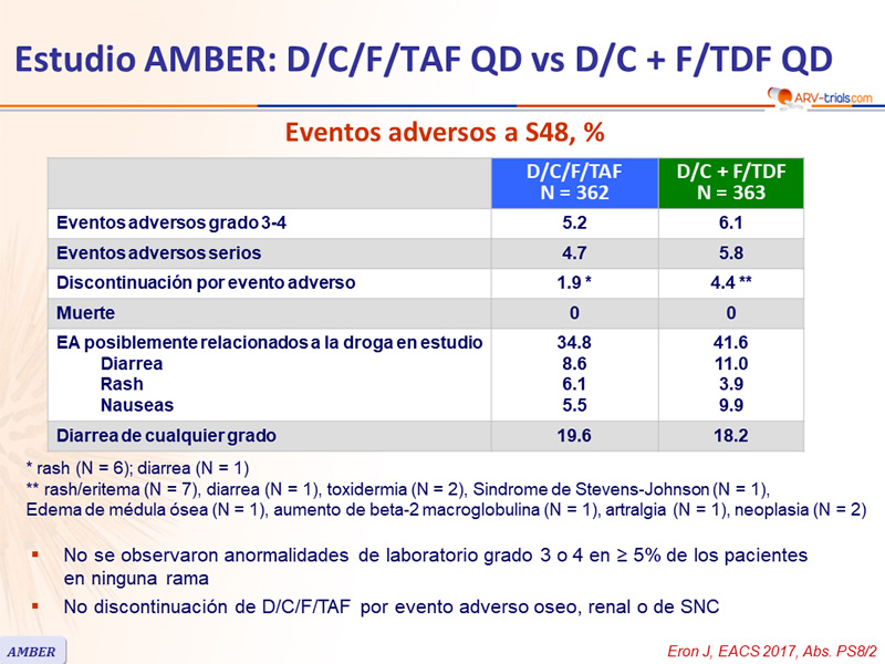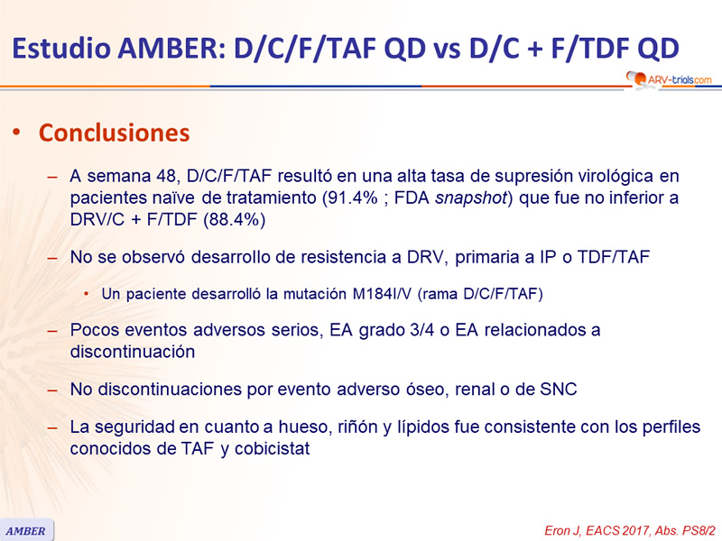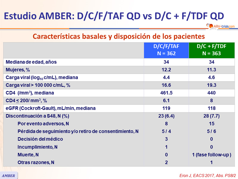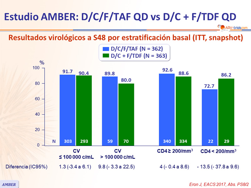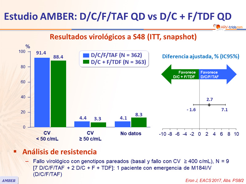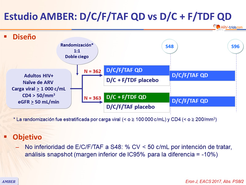 Estudio AMBER: D/C/F/TAF QD vs D/C + F/TDF QD