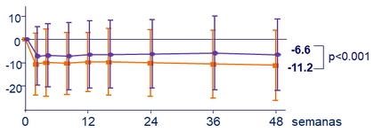 - No se observaron diferencias entre ambos grupos a S144 excepto por