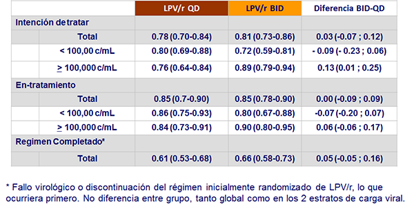 - Globalmente, LPV/r QD y BID tuvieron resultados similares