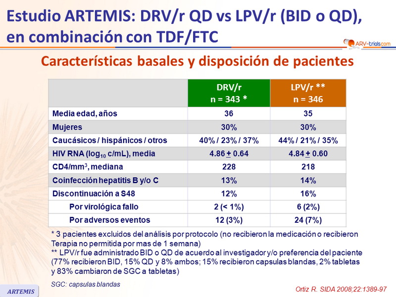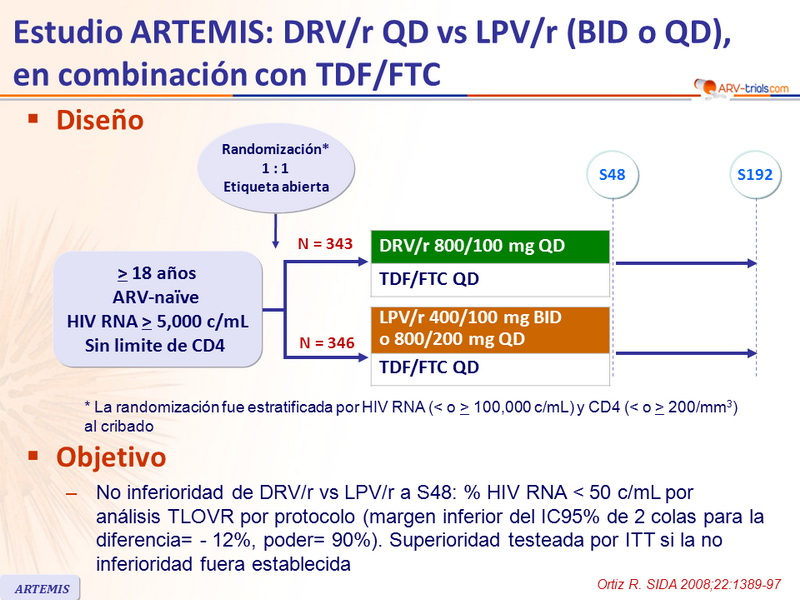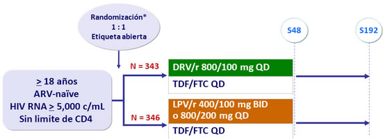 Estudio ARTEMIS: DRV/r QD vs LPV/r (BID o QD),en combinación con TDF/FTC