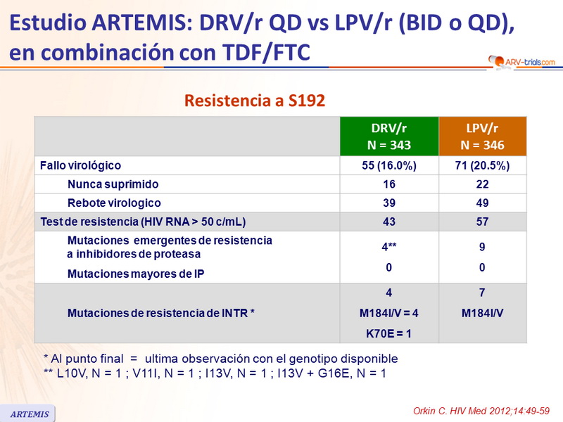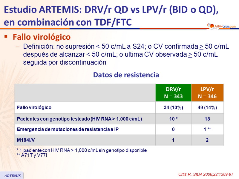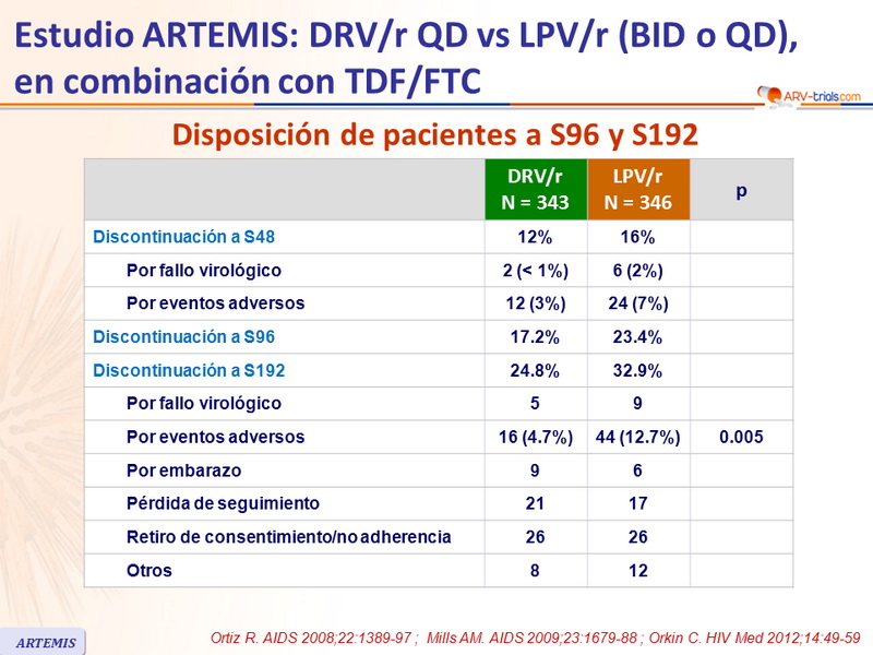 Artículo original : AIDS. 2008 Jul 31;22(12):1389-97 - R Ortiz, AIDS. 2009 Aug 24;23(13):1679-88 - AM Mills, HIV Med. 2013 Jan;14(1):49-59 - C Orkin