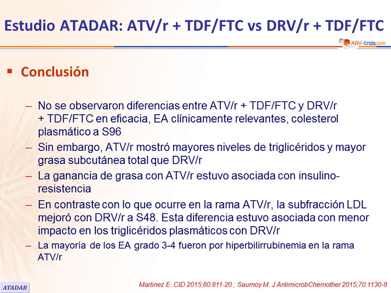 - Sin embargo, ATV/r mostró mayores niveles de triglicéridos y mayor grasa subcutánea total que DRV/r