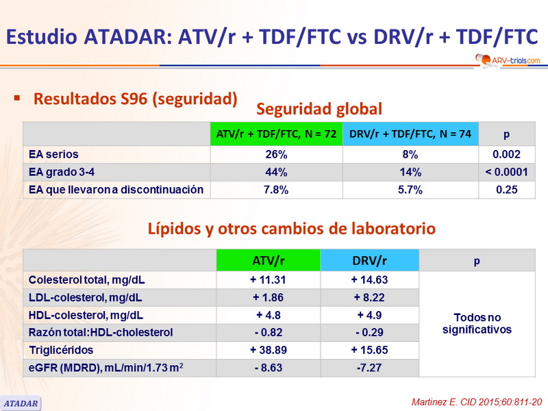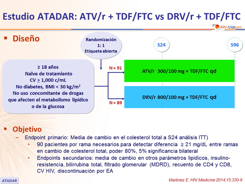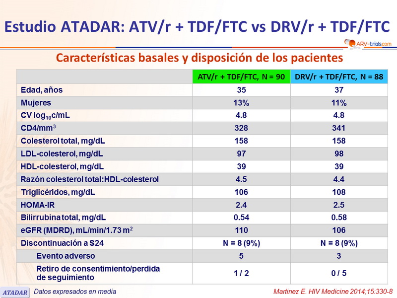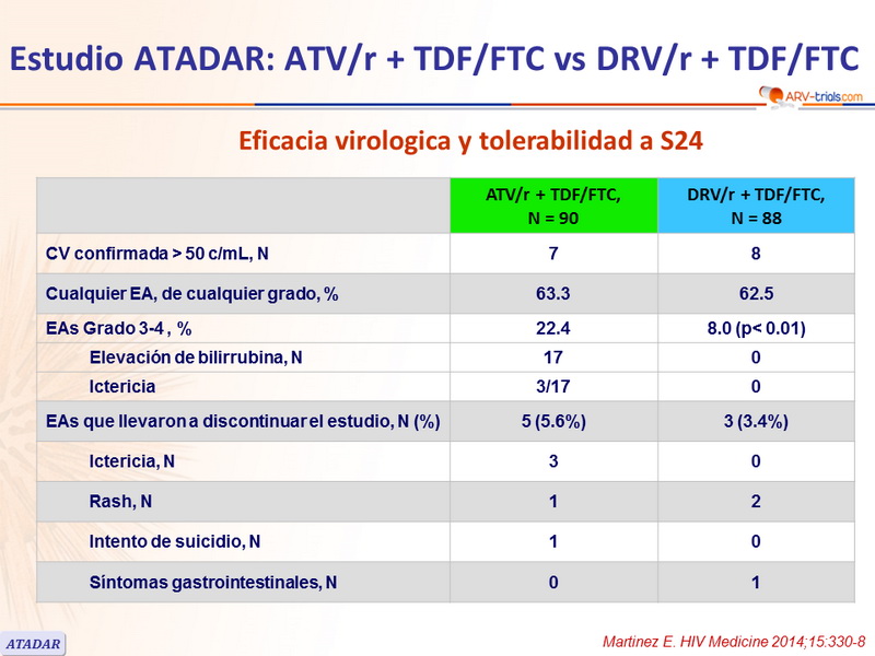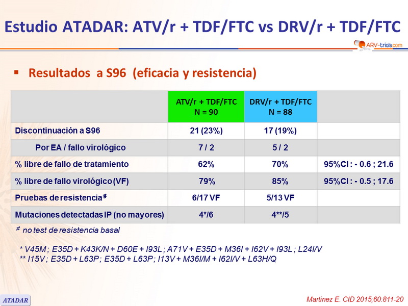 Estudio ATADAR: ATV/r + TDF/FTC vs DRV/r + TDF/FTC