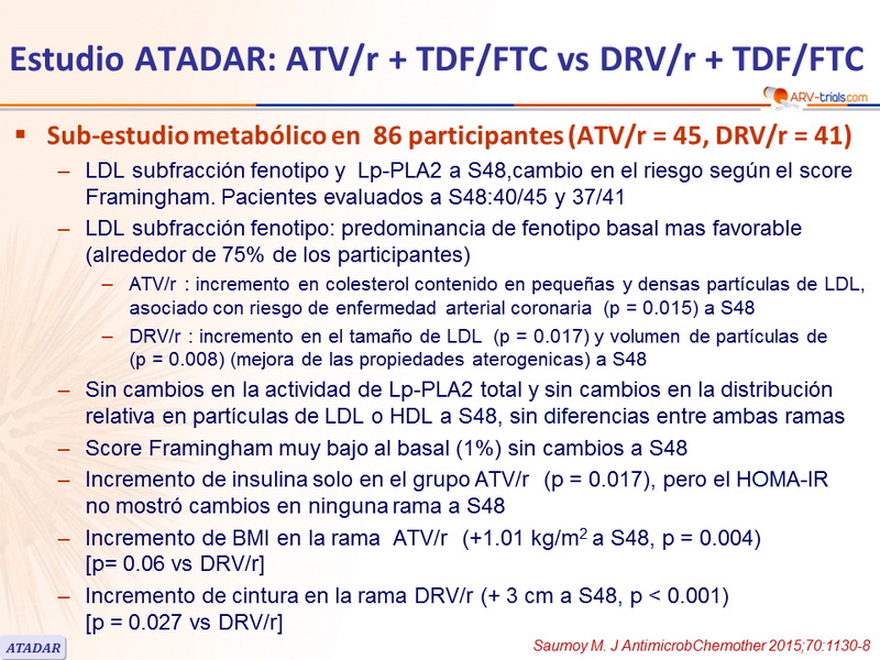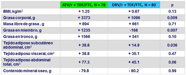 - Incremento de BMI en la rama ATV/r (+1.01 kg/m 2 a S48, p = 0.004)