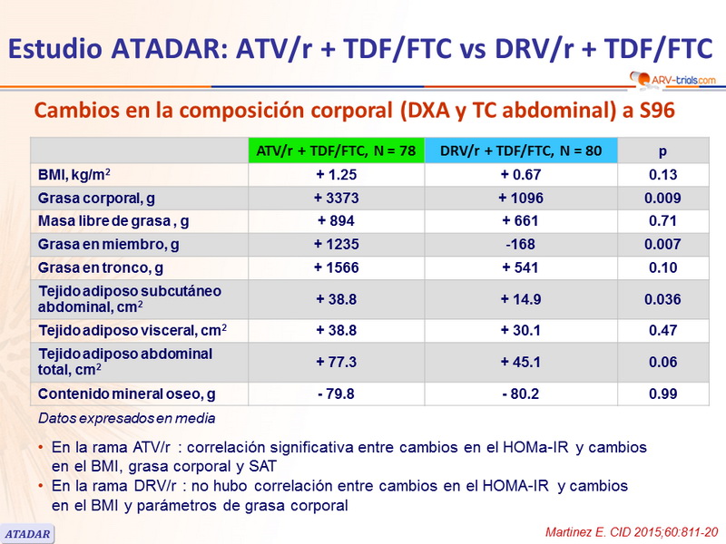 - La ganancia de grasa con ATV/r estuvo asociada con insulino -resistencia