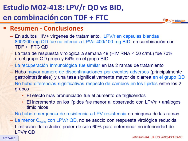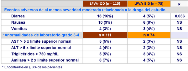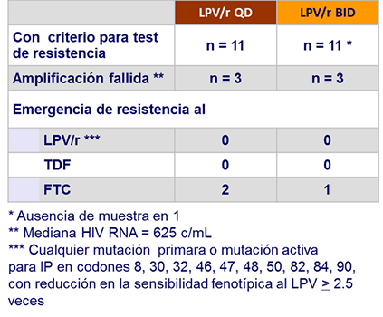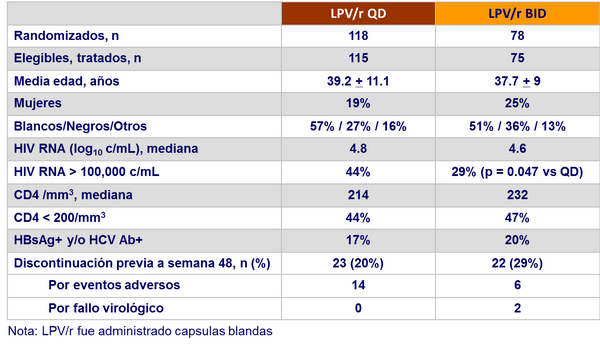 - Limitación del estudio: poder de solo 60% para determinar no inferioridad de LPV/r QD