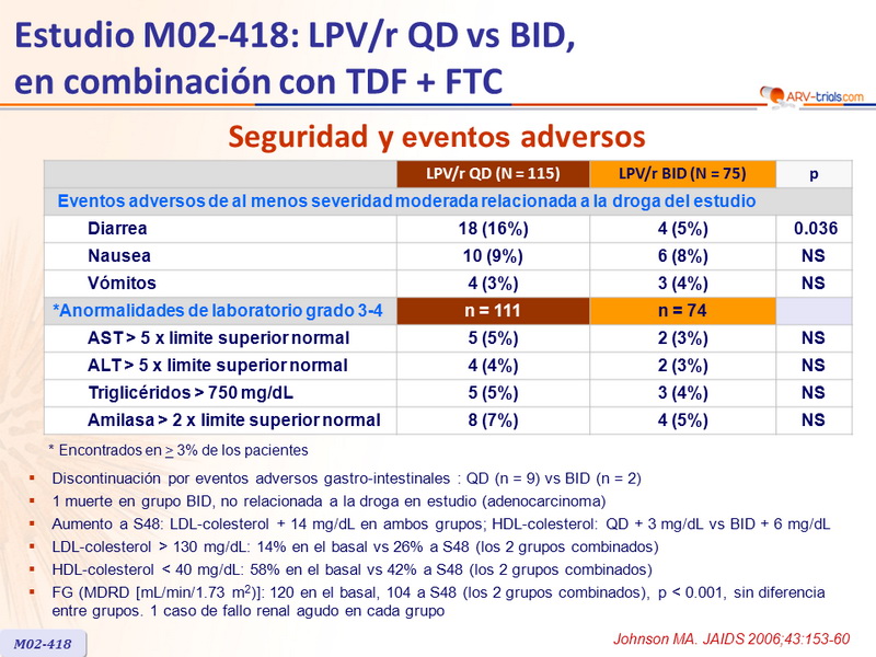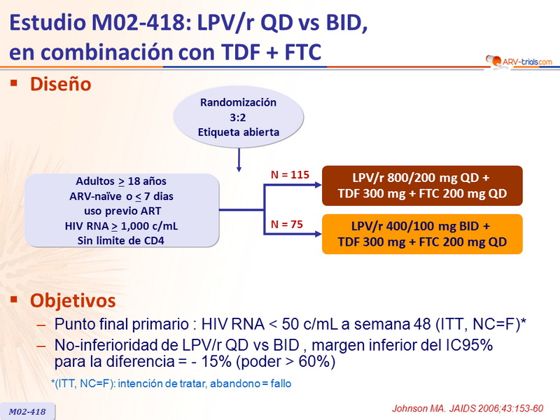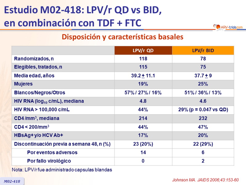 Estudio M02-418: LPV/r QD vs BID, en combinación con TDF + FTC