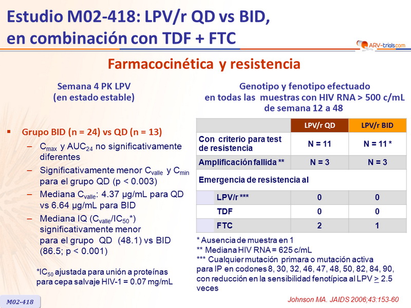 Artículo original : J Acquir Immune Defic Syndr. 2006 Oct 1;43(2):153-60 - MA Johnson