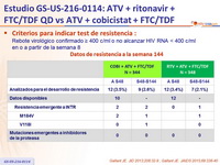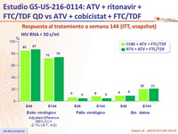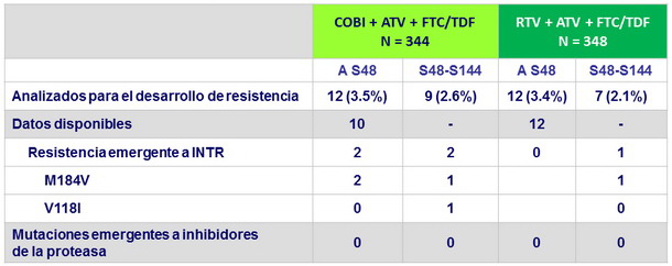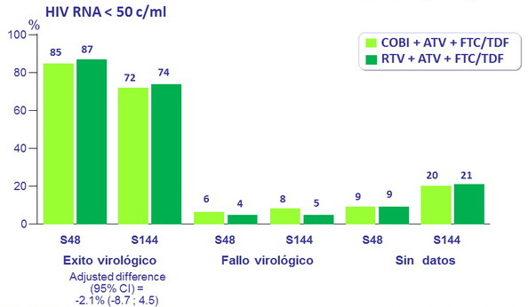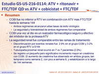 - COBI fue no inferior a RTV en combinación con ATV mas FTC/TDF hasta la semana 144